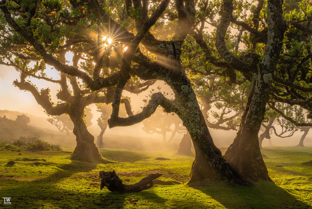 Die Atmosphäre bei solchen Lichtstimmungen -oft einhergehend mit weniger Wind, zwitschernden Madeira-Buchfinken und mehr Ruhe- war dann einmalig in Mitten dieser faszinierenden Bäume. Da dieses Licht nur in Randzeiten auftrat, waren wir hier auch oft -zumindest auf Sichtweite- alleine.